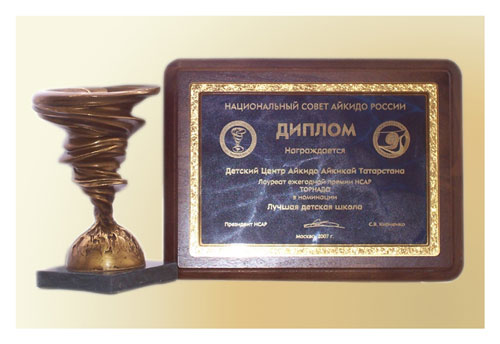 Лауреатом премии «Торнадо» – 2007, учрежденной Национальным Советом Айкидо России, в номинации «Лучшая детская школа» стал Детский Центр Айкидо Айкикай Татарстана, руководитель – Китаев Е.А. Поздравляем Детский Центр и его руководителя с этим замечательным событием! Великолепные выступления Детского центра являются украшением Фестивалей ФААР, и почетная награда справедливо отмечает успехи коллектива.